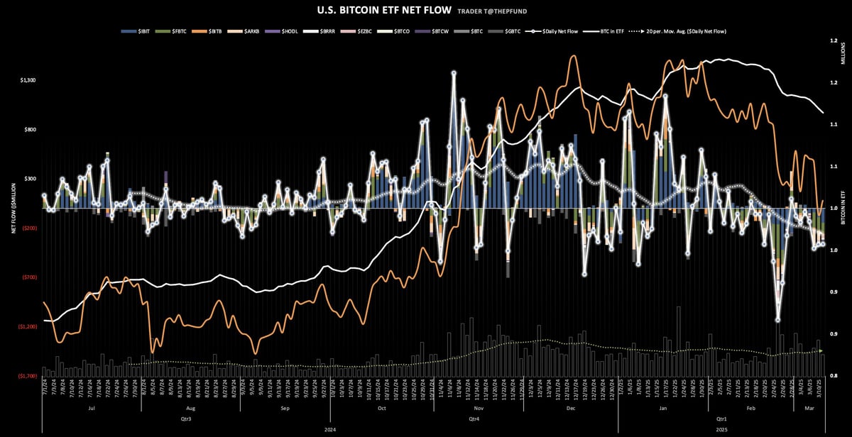 미국 비트코인 현물 ETF 자금 흐름 (출처: @thepfund, X)