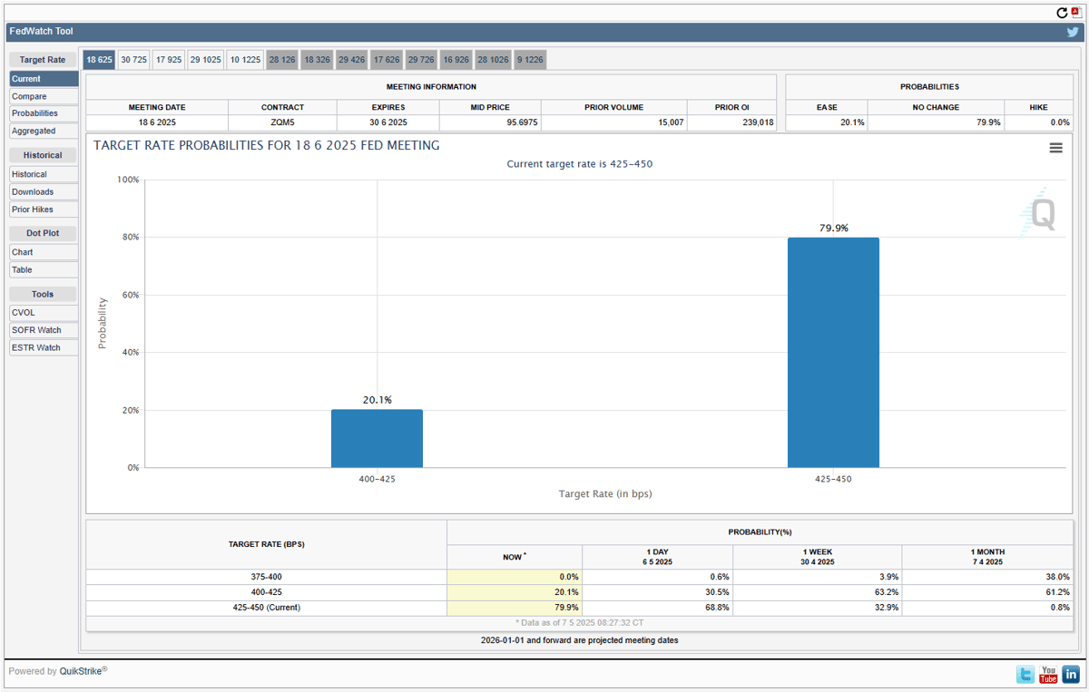 CME FedWatch "Possibility of U.S. Fed holding interest rates steady in June at 79.9%"