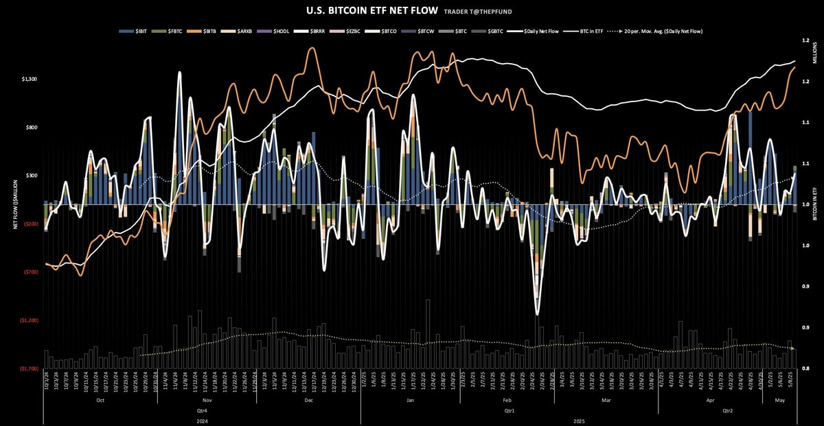 Recent Bitcoin Spot ETF Inflow Rising Sharply (Source: @thepfund, X)